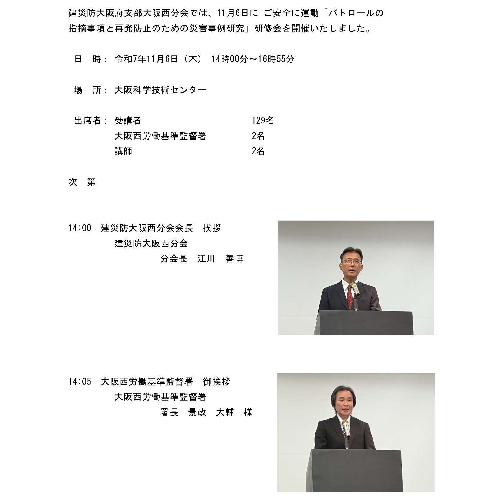 3. 【大阪西分会】令和7年度 ご安全に運動「パトロールの指摘事項と再発防止のための災害事例研究」研修会を開催