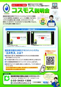 【建災防本部】「コスモス説明会」アーカイブ動画について 2025.12.18 NEW 建災防から 建災防本部のホームページ上で、建設業労働安全衛生マネジメントシステム(コスモス)の「コスモス説明会」について、アーカイブ動画が掲載されています。コスモスの必要性と導入の効果、コスモスガイドラインについて説明されているので、ぜひご覧ください。 《URL》 ■建災防本部ホームページ 「コスモス説明会」のご案内