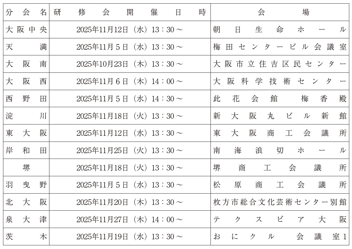 令和7年度「ご安全に運動研修会」 2025.10.01 NEW 建災防から 建災防大阪府支部では、「ご安全に運動研修会」を下記のとおり分会ごとに開催します。 今年度のテーマは、「パトロールの指摘事項と再発防止のための災害事例研究」です。 参加ご希望の方は、各分会へお問合せください。